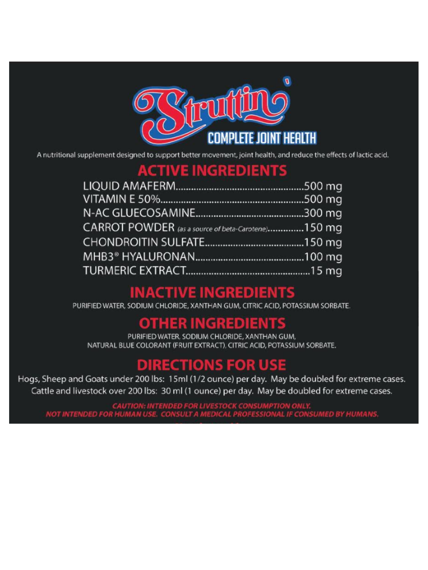 Rule Supplements has worked with industry leading breeders and showmen to develop a product that addresses all aspects of joint health. Struttin is designed to support better and more fluid movement, improve joint health while reducing the effects of lactic acid as your livestock power through the competition.