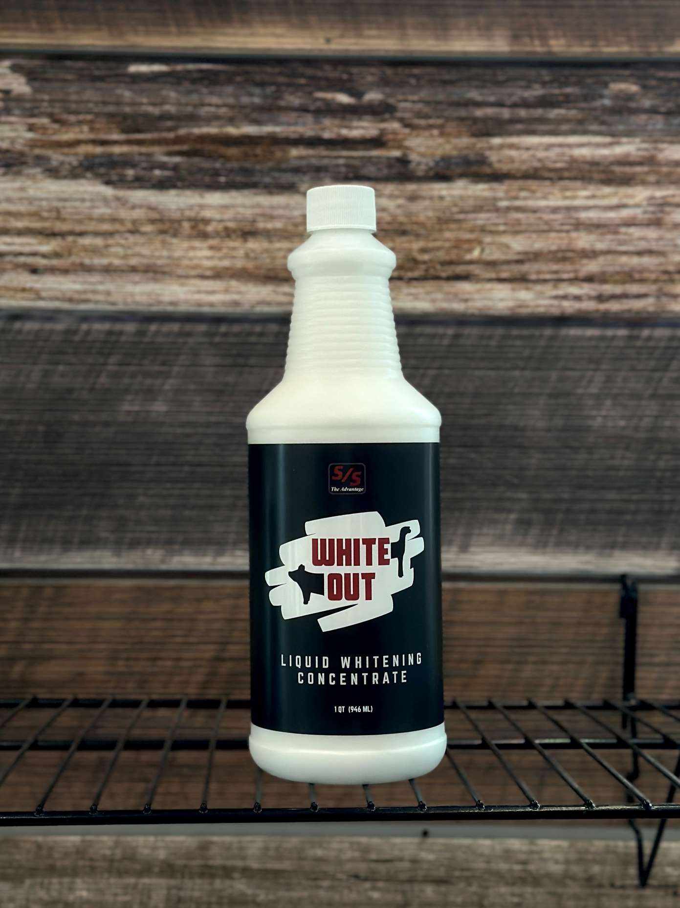 White Out is a liquid polish designed to whiten hair on white-colored livestock, restoring a vibrant appearance to dull hair and skin without the need for washing out.