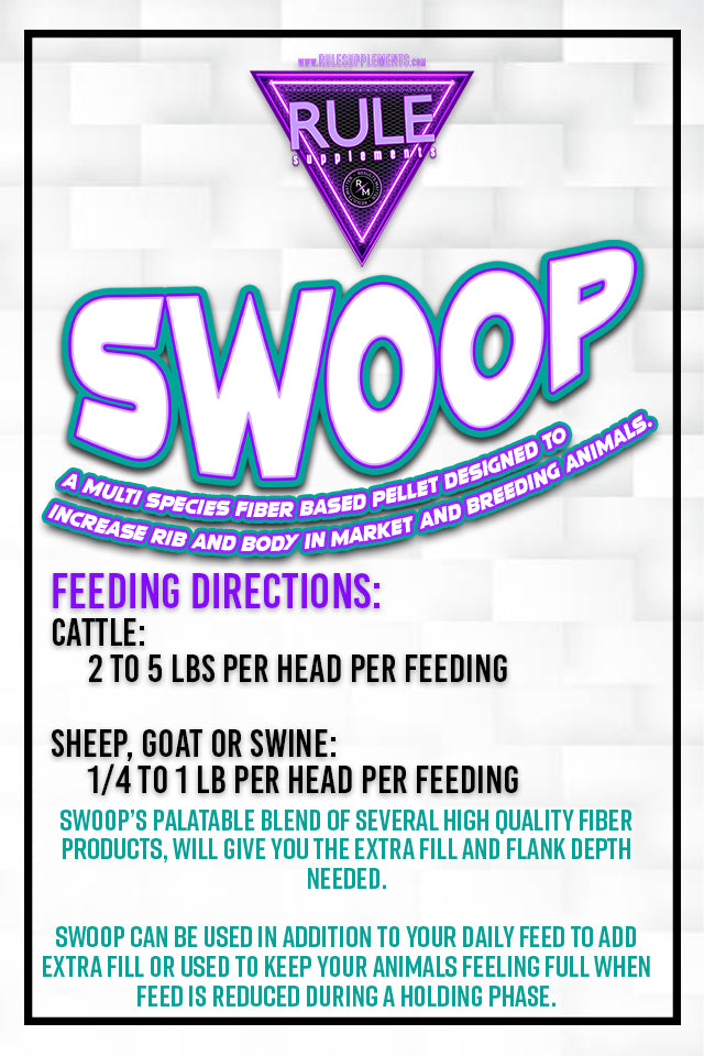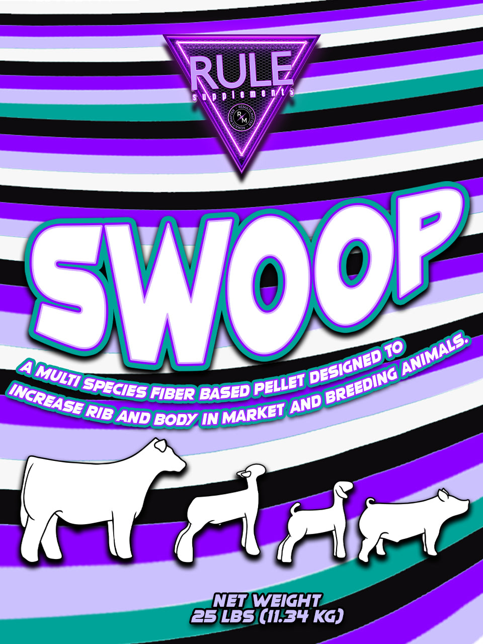 SWOOP - A multi-species fiber-based pellet designed to increase rib and body in market and breeding animals.